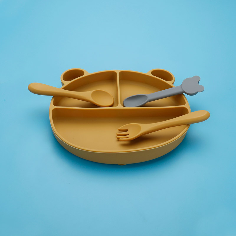兒童硅膠餐盤 餐具寶寶分格防摔笑臉盤